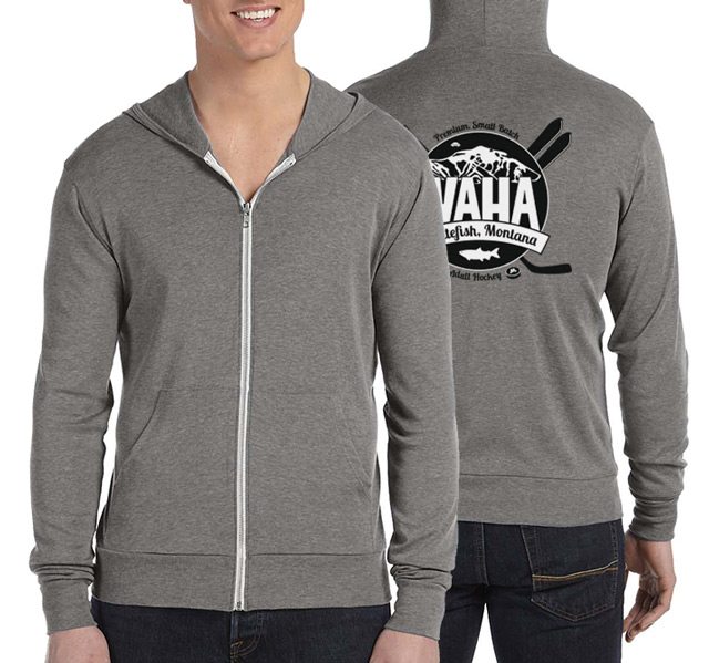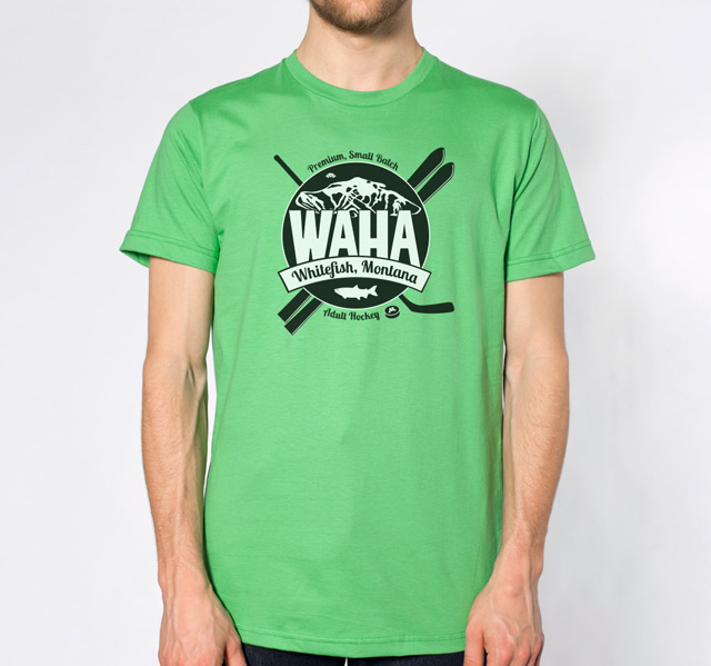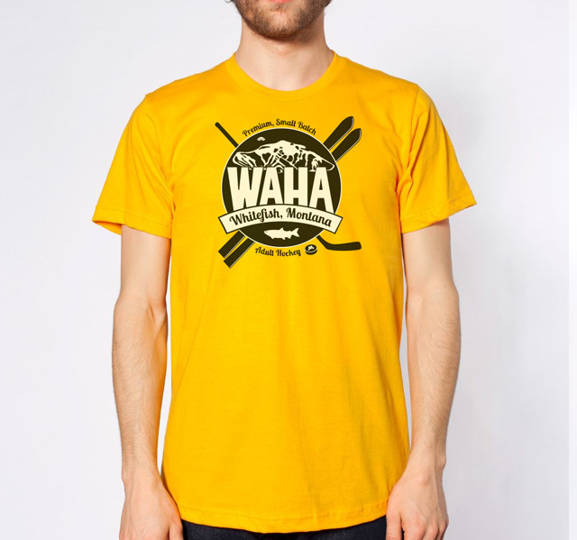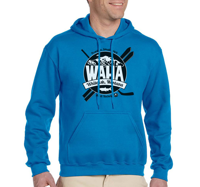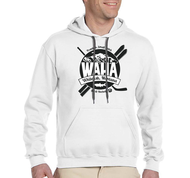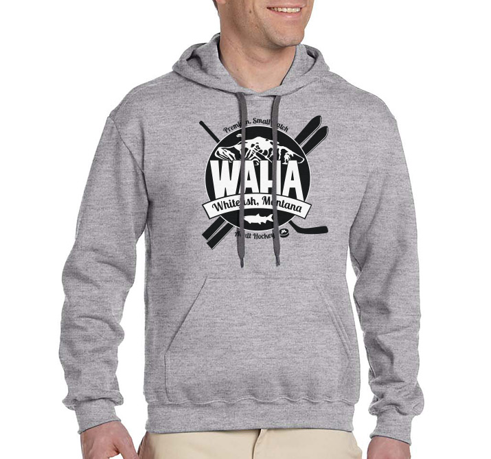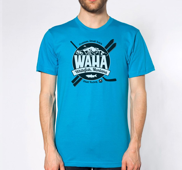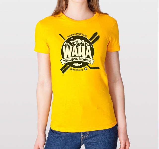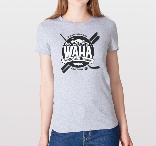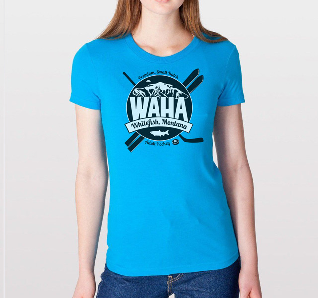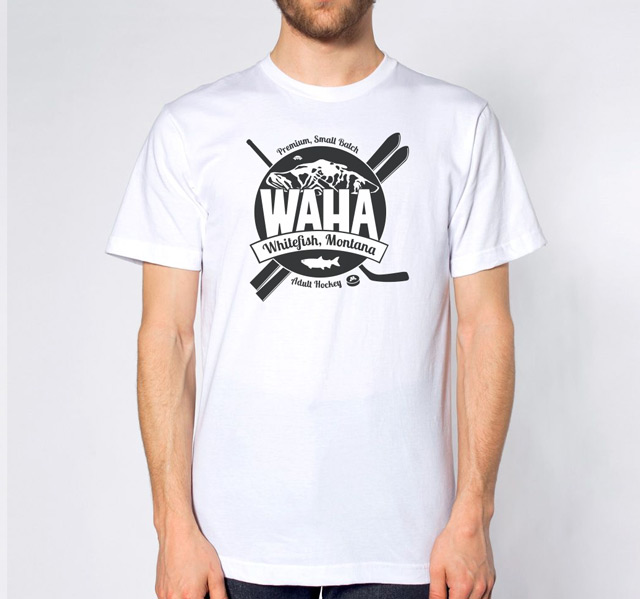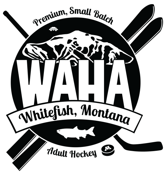 The WAHA logo has been carefully crafted with electrons and hockey magic. Symbolism found within it abounds—from the fish that named our town, to the founders of our hockey movement, to a celebration of the multi-sport athlete that is the heart of WAHA. Wearing this logo says loud and clear, "I play hockey, in a town, renowned for skiing."